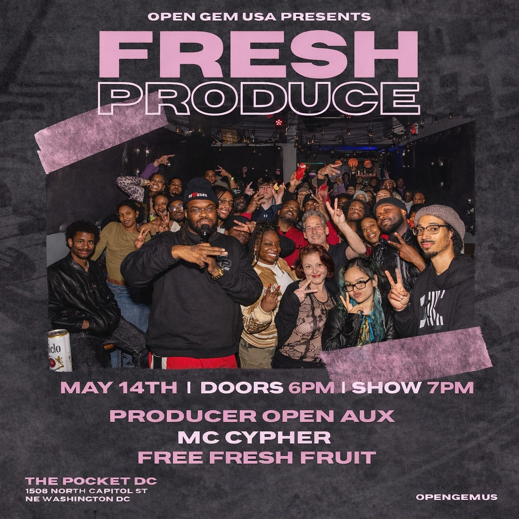 Fresh Produce, an open mic for producers, makes its return to The Pocket DC. The event is designed for producers to showcase their talent. Producers are allowed a 2-beat set (5 min. max.) and have the option of letting a few MCs freestyle. Sign up starts at 6pm, and limited producers will perform chronologically.