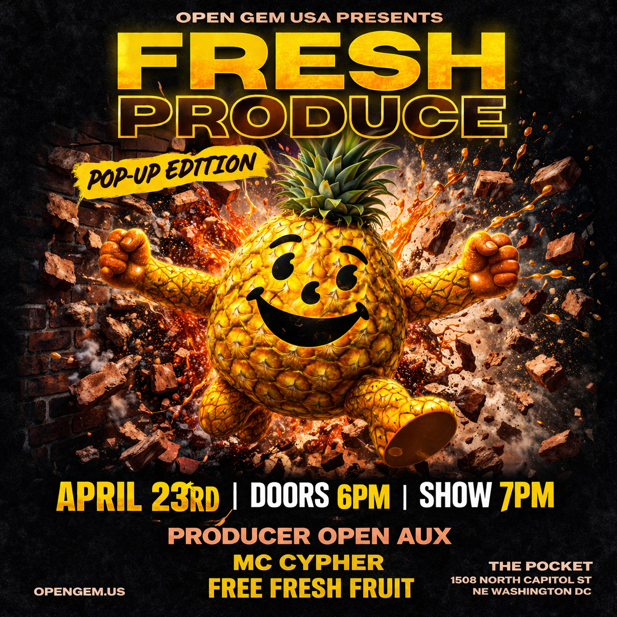 Fresh Produce, an open mic for producers, makes its return to The Pocket DC. The event is designed for producers to showcase their talent. Producers are allowed a 2-beat set (5 min. max.) and have the option of letting a few MCs freestyle. Sign up starts at 6pm, and limited producers will perform chronologically.