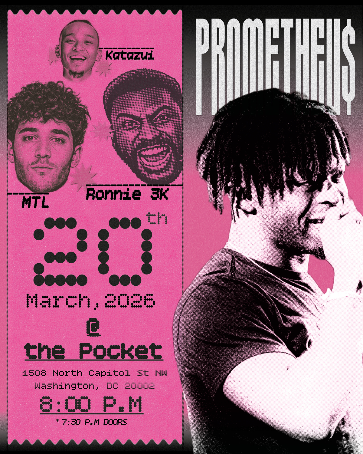 Shane Gardner, also known as PROMETHEU$, was born and raised in Ashburn, Virginia and began rapping and making beats in 8th grade. Since then, his love for Hip-Hop and rapping has grown immensely. The self-taught producer/rapper can do it all, and isn’t afraid to rap over any instrumental, whether it be his own beat, or a remix. His songs can be characterized by his dynamic vocals, unique sampling, as well as his many flows. Lyrically, PROMETHEU$ is in your face, delivering witty punchlines at various tempos, combined with his raw, gritty vocals.
